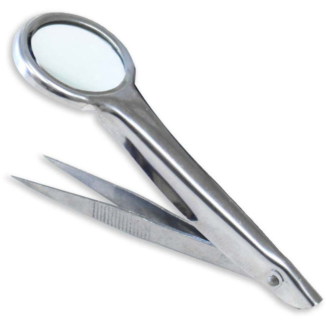 3" Stainless Steel Tweezer With 1" Diameter Lens, 5X Power Magnifier Built In - MG-08990