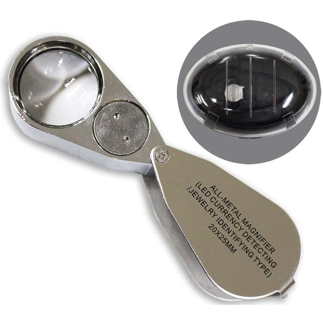 Jeweler's Loupe with LED and UV Light - 20X Power - TJ-72120