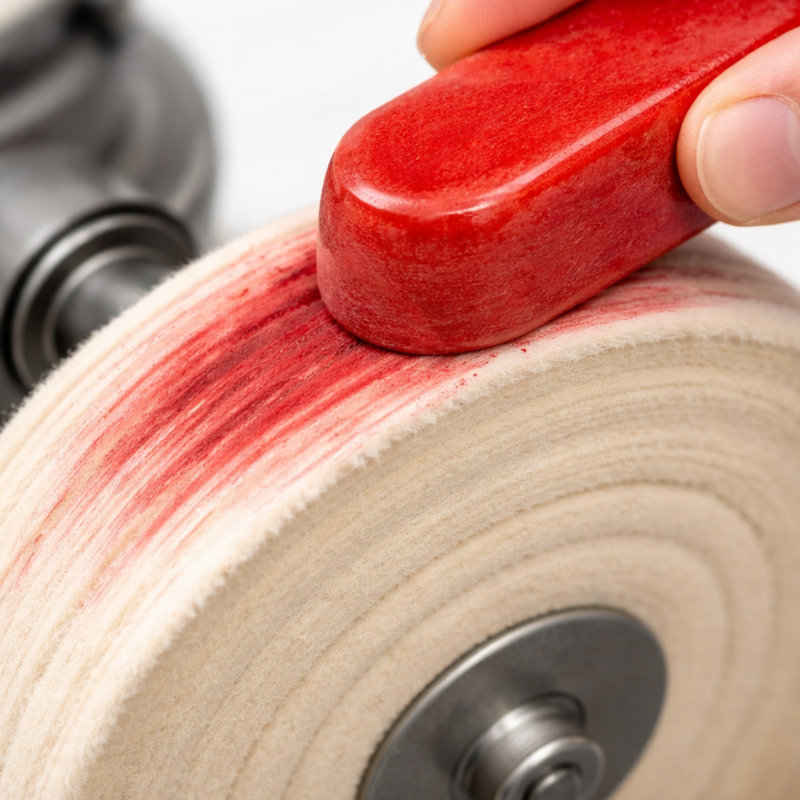 This compact, easy-to-handle bar applies smoothly to buffing wheels and felt polishing tools. When used with a rotating buff or polishing wheel, it gently removes light surface marks and produces a clean, professional shine without scratching delicate materials.