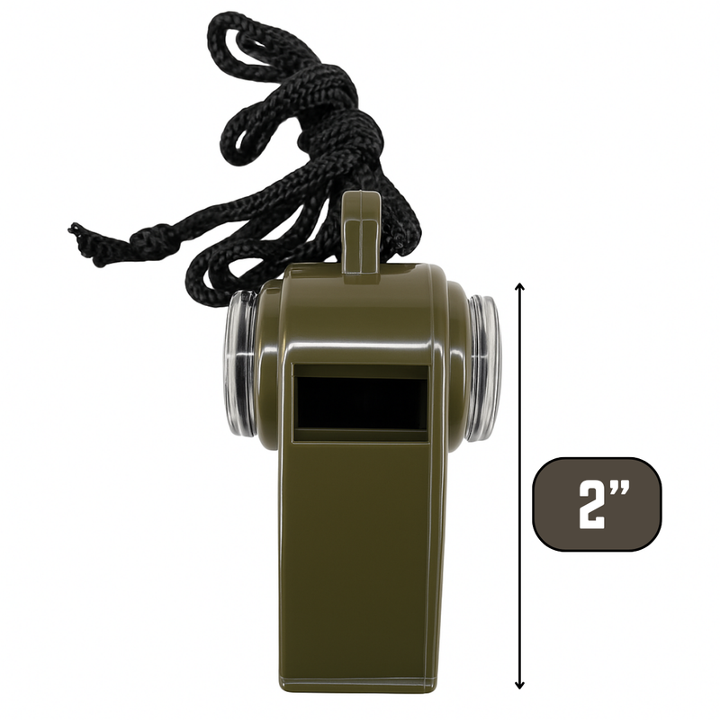 Be prepared for any outdoor adventure with this 3-in-1 survival whistle! Each whistle combines a loud emergency whistle, directional compass, and temperature gauge in one compact tool. Designed in durable olive-green plastic and paired with a long neck lanyard, it’s easy to carry whether you’re hiking, camping, scouting, or enjoying the outdoors. Ideal for both kids and adults, this practical set of two ensures you always have a backup for safety and navigation.