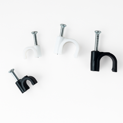 Complete 390 Pc Set – Includes both black and white cable clips with steel nails for secure mounting of wires and cables.