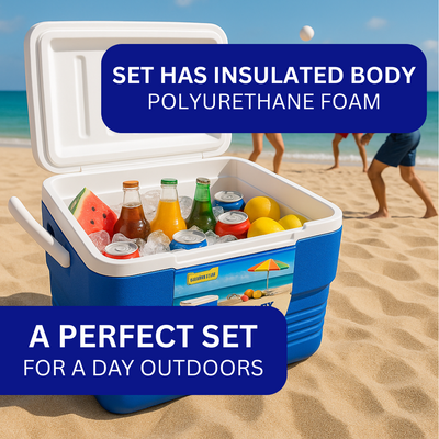 Take your outdoor adventures to the next level with the Adroit Chill-Ex Ice Box Cooler Set. This all-in-one combo includes 5 premium insulated pieces: 66L, 32L, 10L, and 5L hardbody ice chests, plus a 900ml thermal jug. With spacious interiors and high-grade insulation, these coolers keep drinks ice-cold and fresh for hours. Whether you're tailgating, road tripping, beach lounging, or hosting a BBQ, this set is built to perform. Rugged, lightweight, and easy to carry – just load up and chill out!