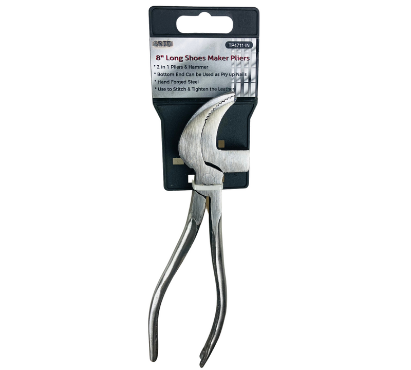 Introducing our 8" Long Shoe Maker Cobbler Pliers, a versatile and essential tool for every craftsman and leather enthusiast. Hand-forged with precision and care, these pliers are a testament to the artistry and functionality of traditional blacksmithing. Crafted from high-quality steel, these 2-in-1 pliers and hammer are designed to meet the unique needs of shoemakers and cobblers, offering a seamless blend of strength, durability, and craftsmanship.