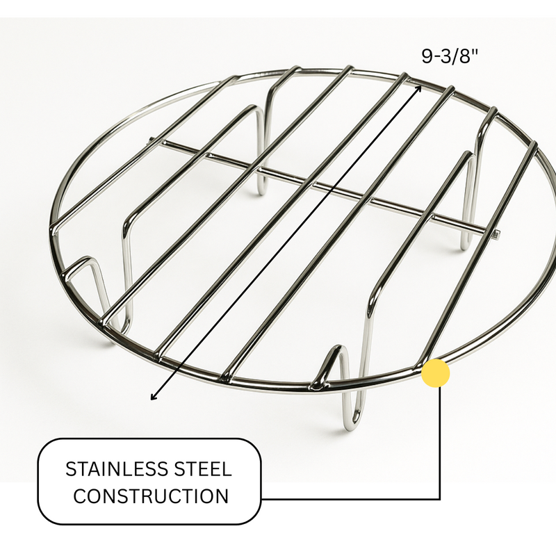 Upgrade your kitchen with this versatile 9-3/8" Stainless Steel Steamer Rack, designed for healthy, efficient cooking. Crafted from durable, food-grade stainless steel, this rack fits neatly inside most large pots, pans, and pressure cookers. The 1-3/4" raised height keeps food elevated above boiling water, allowing steam to cook vegetables, dumplings, seafood, and more while preserving nutrients and flavor. Easy to clean and rust-resistant, it doubles as a cooling rack for baked goods or a trivet for hot dishes. Ideal for everyday home chefs and professionals alike, this steamer rack makes steaming simple and effective.