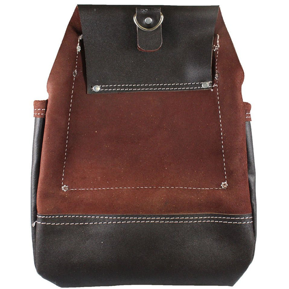 This Is A Top Grain Black Leather Tool Pouch. It Has Separate Compartments With Places For A Wide Variety Of Pliers, Screwdrivers, And Other Tools 6 Small Pencil Pockets. 2 Belt Level Inner Pockets.(8 1/2"x6.5")apx. & (7"x6.5")apx. 1 Large Main Pocket (9.5"x9")apx. & 1 Medium Size Pocket (5 1/2" X 51/2") . 2 Metal Fixed Hammer Holders (2 1/2" Dia.) Apx. All In All, This Is One Exceptionally Fine Tool Pourch.* Approx. 13" X 9.5", Has 10 Pockets * Rivets At All Stress Points * Two Metal Hammer Holders