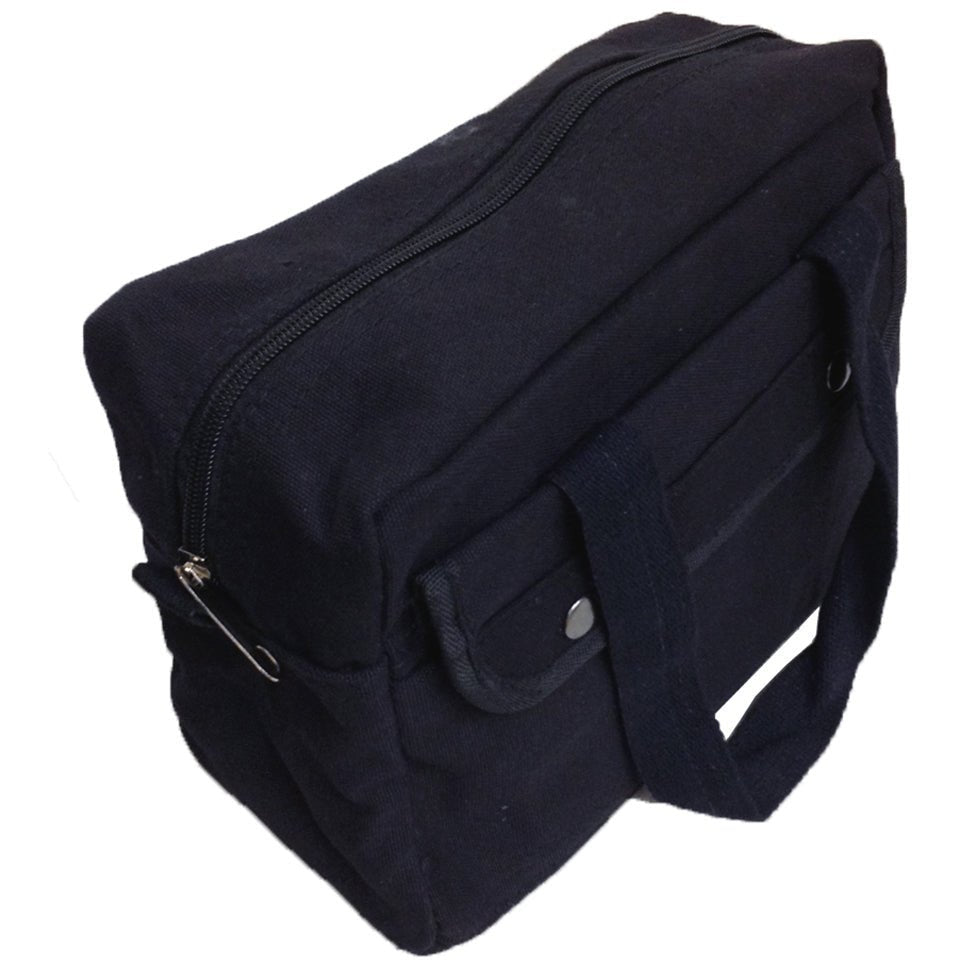 This Black Canvas Bag Can Be Used For Just About Anything You Wish. It Measure 9" X 6" X 7". A Convenient Size To Take On An Over-nighter, Or Use As A Gym Bag. You Can Carry Tools, Personal Items, Or Anything Else You Want. This Bag Has Four Handy Pockets On The Inside To Separate And Store Small Items.* Reinforced Stitching On The Handles * Heavy Duty Zippered Top * Snap Closer Pocket On The Side