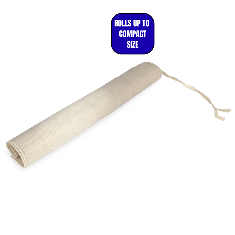 Spacious Yet Compact: Measures 18” x 18” when open — rolls up easily and ties securely for compact storage or travel.
