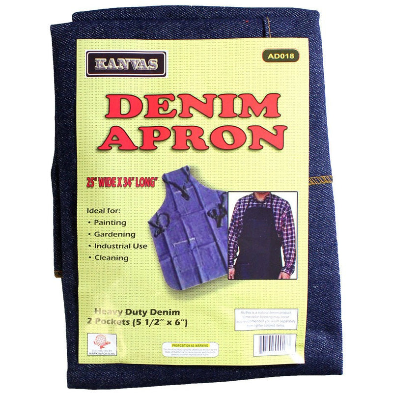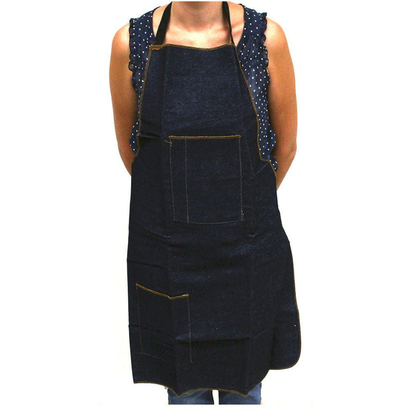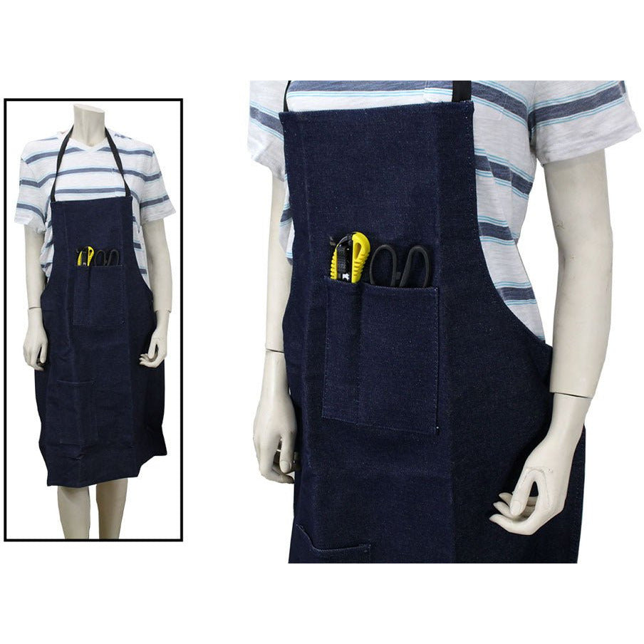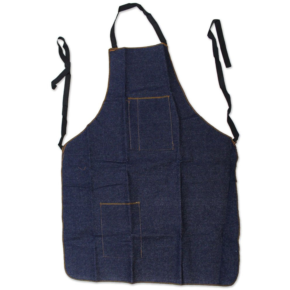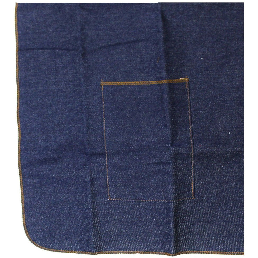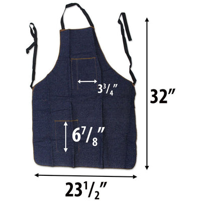 Made of strong, heavy duty denim, this is the same apron that many professionals prefer. Long enough to protect below the knee, with reinforced neck strap and tie-in-the back straps. Two pockets - one at the top and one at the bottom keep everything you need at your fingertips. Bottom pocket has a 6-7/8" height and top pocket has a 3-3/4" width with a small 1-5/8" wide pocket right next to it. Apron measures 23.5" wide and 32" long. Due to the natural properties of denim, colors may vary from photo.