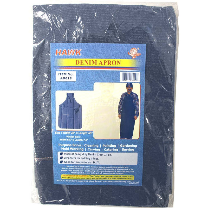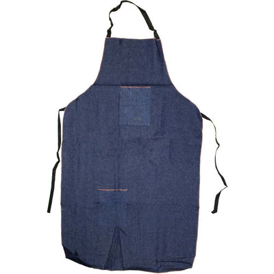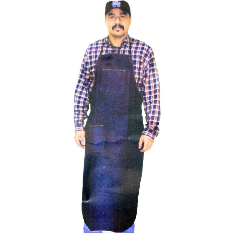 This "bib" style apron provides protection for your clothing from your chest to your shins. If the work you are doing is extremely dirty or messy, this heavy duty denim apron is the one for you. Made extra long to cover more area, it measures 48" x 25", and features 2 pockets, each measuring 5.5" x 6".This apron is 48 inches in length, and 25 inches across the front Fastens with a loop around the neck, and ties around the back waist area Made of heavy duty blue denim-bib style front- extra long to keep your clothes cleaner Length can be adjusted simply with a pair of fabric shears Excellent for cooking, barbeque, janitorial, warehouse and much more