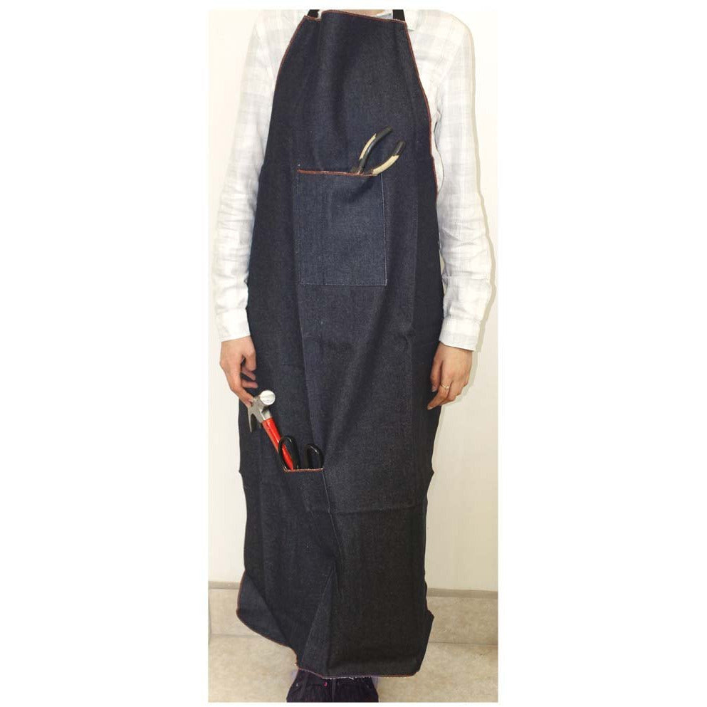 Bib Style Extra Long Denim Apron with 2 Front Pockets - AP-00019