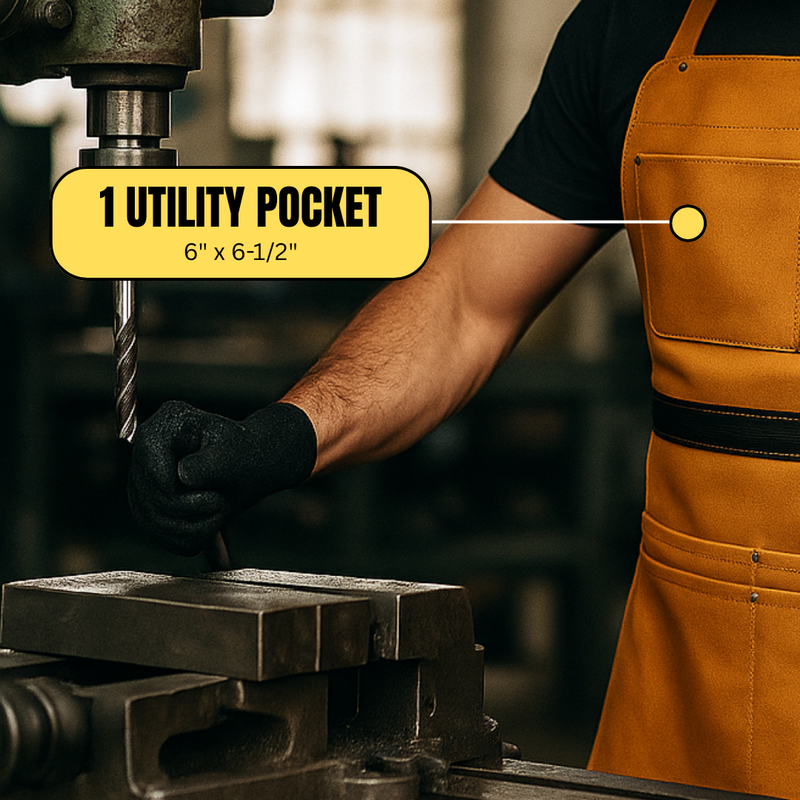 Protect your clothing from grease, grime, and everyday shop mess with this rugged 24" x 17" leather work apron. Made with a durable suede finish, it features 7 roomy pockets to keep essential tools and supplies close at hand. The apron is reinforced with heavy-duty stitching and grommets, built to withstand demanding use in garages, workshops, and job sites.