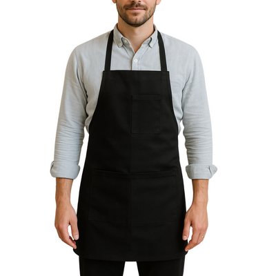 Tackle any task with confidence in this heavy-duty black canvas bib apron. Designed for durability and protection, this apron is perfect for use in workshops, warehouses, garages, and more. The full bib-style front shields your clothing from dirt, grease, and wear, while the spacious pockets provide easy access to tools, gloves, or personal items. Built from rugged canvas fabric with secure neck and waist straps, it offers both comfort and toughness for long workdays. Whether you're a mechanic, artist, crafter, or warehouse worker — this apron has you covered.
