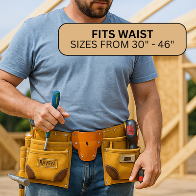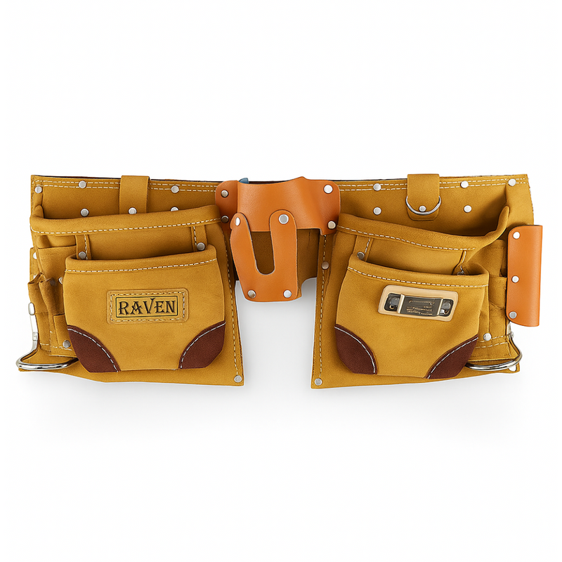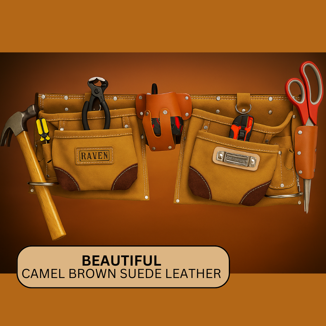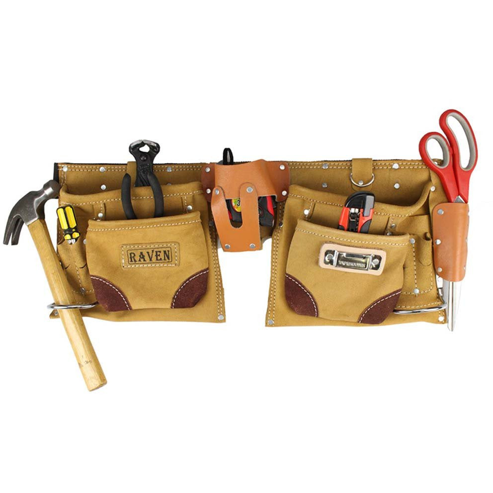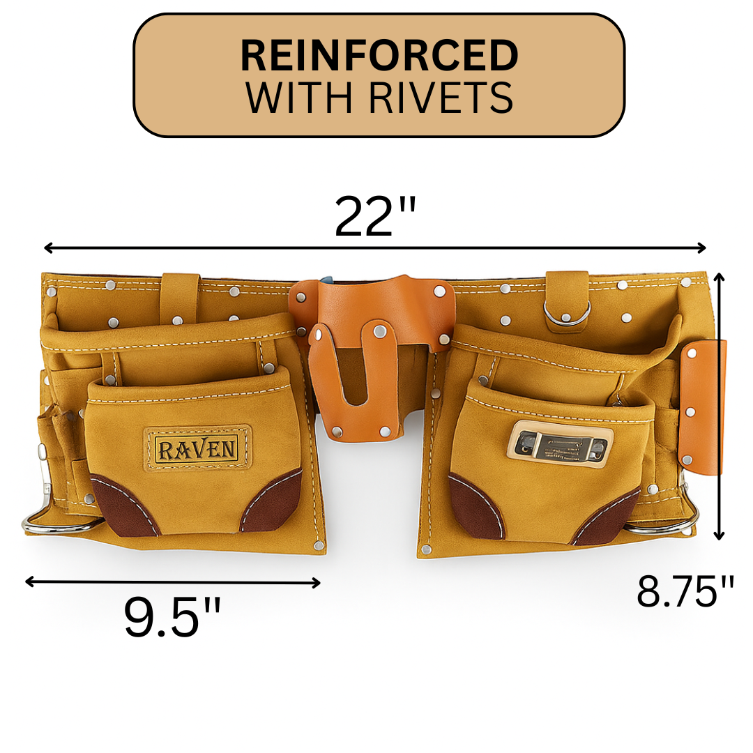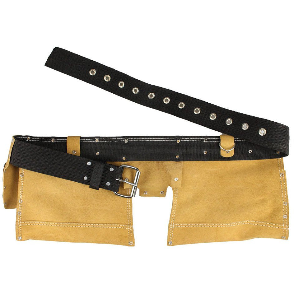 Get the job done right with this premium all-purpose tool belt, designed for hardworking professionals and DIY enthusiasts alike. Made from natural-colored suede leather and reinforced with double stitching and rivets, this tool belt offers exceptional durability, comfort, and storage for every trade.
