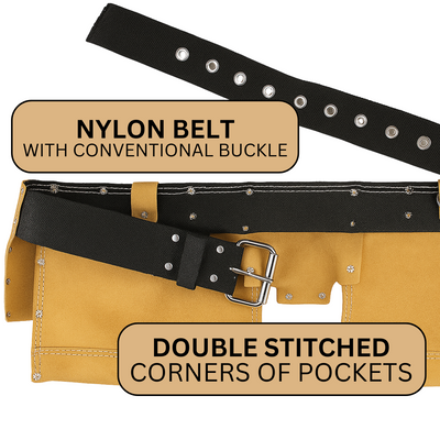 ✅ 11-Pocket Layout: 2 large pockets, 2 nail pockets, 6 pencil/thin tool pockets, and 1 knife sheath for organized storage.