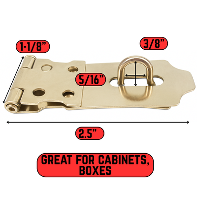 ⚙️ Compact Size – Hasp measures 2.5 inches long, with a 5/16-inch hasp loop opening and 3/8-inch height, ideal for small doors, cabinets, or boxes.