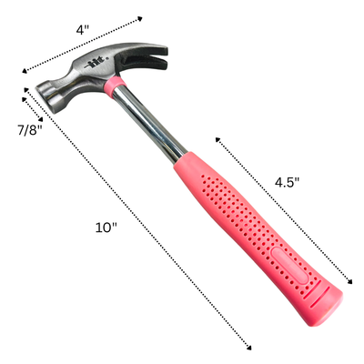 The 8 oz pink claw hammer features a heat-treated, polished steel head for reliable performance, paired with a comfortable grip handle that’s easy on the hands. Its lightweight design makes it ideal for small jobs like hanging pictures, tightening nails, or quick home fixes.