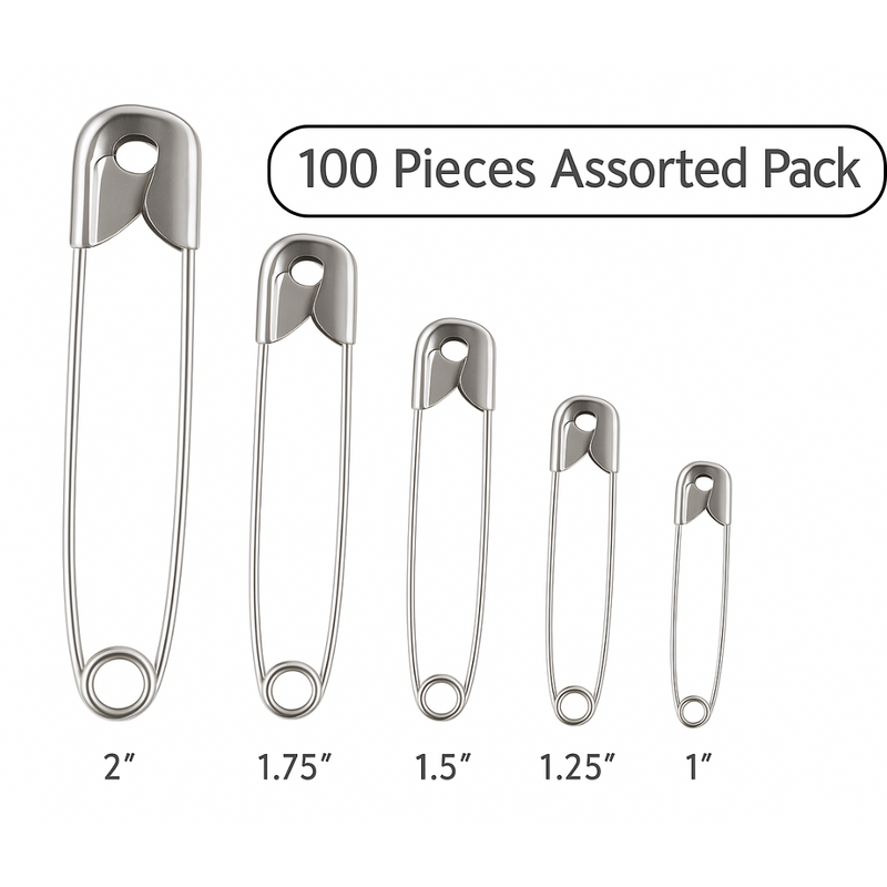 ✅ 100-Piece Value Pack – Includes 100 silver-colored safety pins in assorted sizes, perfect for every household’s needs.