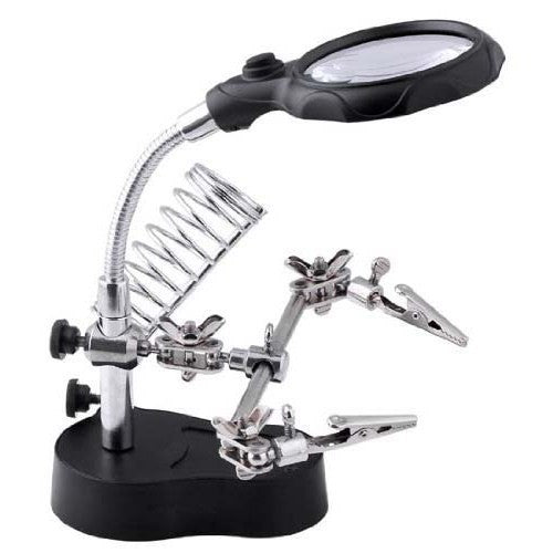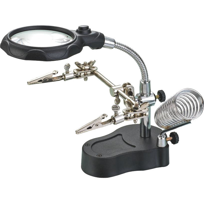 This is the best of the best in helping hand magnifiers. Perfect for anytime you need another pair of "hands" to help you hold the work, while you do the soldering and repairs. Great for electronic repairs, hobbies, jewelry making, and model making.
