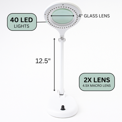 2x White Magnifier 40 LED Desk Lamp | 4 Inches Lens | Portable - CR-99259