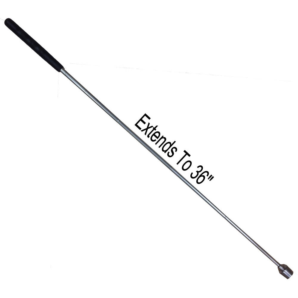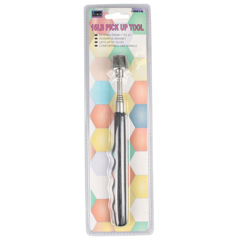 This magnet extends to 25", which makes it perfect for cleaning up floor spills of such thing as nuts, bolts, nails, etc. The magnet will hold an object up to 16 lbs. This magnet is great for picking up items that roll underneath cabinets or chairs.* Saves your back from all that bending * Ergonomic handle with wrapped black grip * Extends from small, portable size to 25 inches easily (includes handle) * Extensions can be made to fit any need with its multiple extending shafts * Lifts up to a hefty 16 pounds! - great for larger jobs