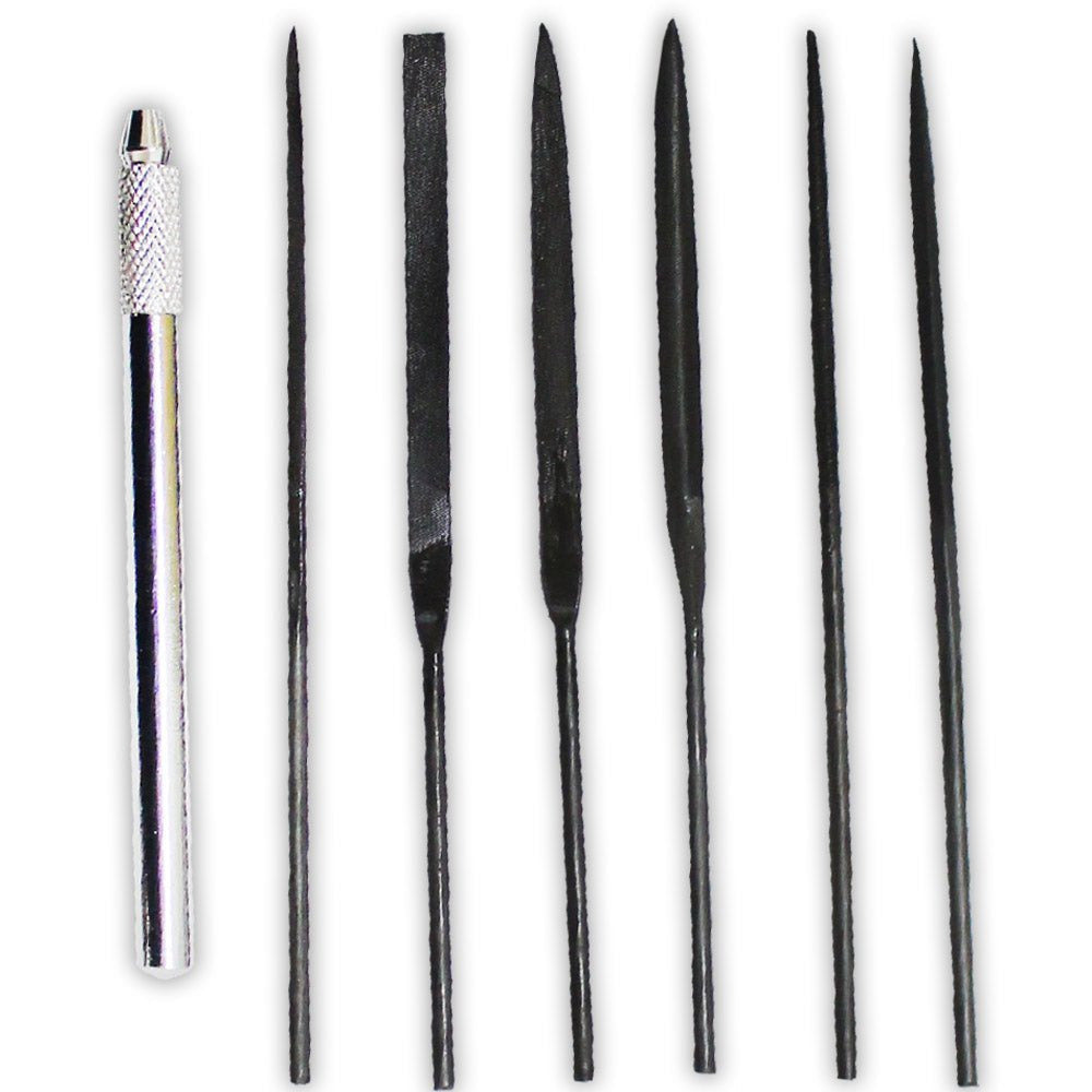 Perfect for jewelers, model makers, and crafters, this set smooths sharp edges on newly drilled or sawed metal, pottery, and wooden items. Lightweight yet durable, the entire set weighs just 0.31 ounces and includes one ergonomic handle that fits all six precision files.