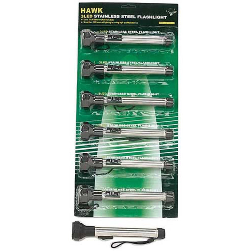 3-LED Stainless Steel Flashlight - Pack of 6 - FL-32303