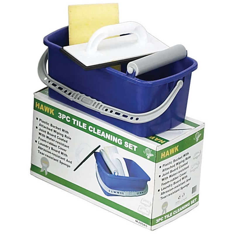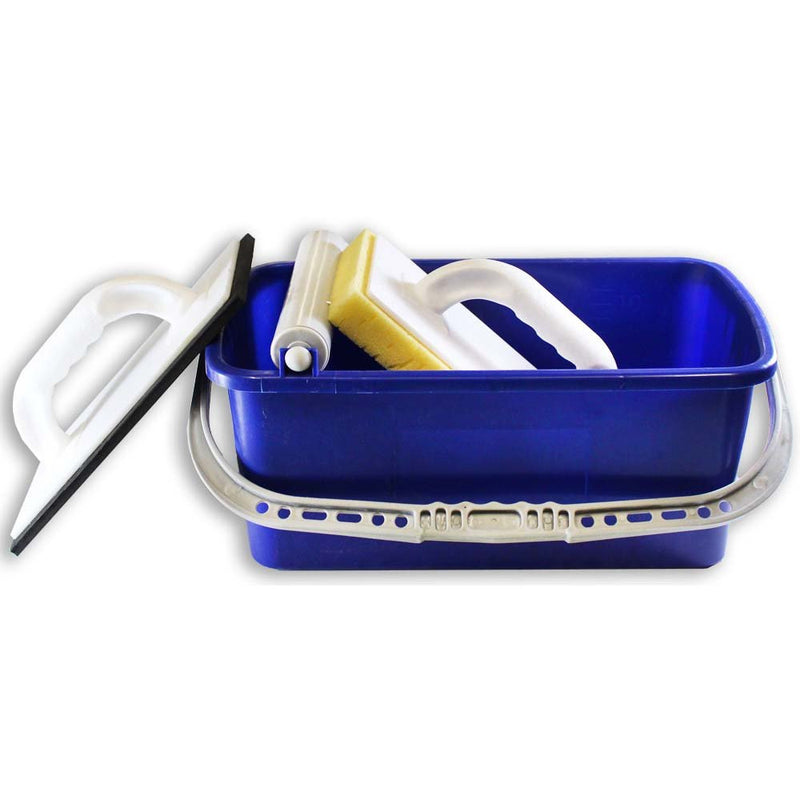 Make every surface in the house shine with this set! This 3 piece set includes a plastic bucket (16 inches x 8inches x 7inches) with attached wiping role and carrying handle, pvc foam wipe (11 inches x 5 1/2 inches x 3/8 inch, water resistant) with dorsal handle on plastic board, and sponges (11" x 5 1/2" x 1 1/4") with dorsal handle on the plastic board.* Comes with bucket, wiping roll, foam wipe, and sponges * Laundry board has an abrasion-resistant and tear resistant sponge * Joint board has a water-resistant rubber-foam cover * Bucket has a detachable wiping roll - Bucket doubles as a carryall for all items * Bucket Is 16 inches in length X 8 inches in height X 7 inches in width - Water resistant