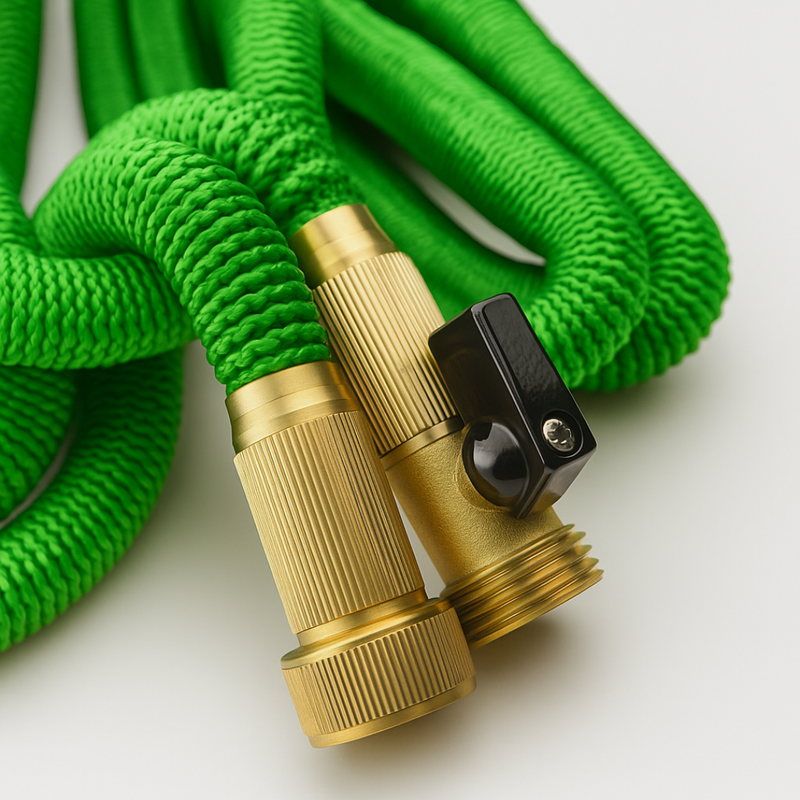 Make watering your garden easy and efficient with the GrowGreen Expandable Garden Hose. Designed with a durable latex core and a flexible, kink-free outer layer, this hose expands up to 3x its length when filled with water and retracts quickly when done. It’s lightweight, easy to store, and perfect for all outdoor watering needs—from lawns and gardens to patios and cars. Equipped with solid brass fittings for leak-free performance and a multi-pattern spray nozzle for versatile watering options, this hose is built to last season after season.