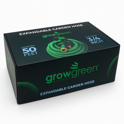 GrowGreen 50ft Expandable Garden Hose with Brass Connectors & 8-Pattern Spray Nozzle – 3/4 Inch Flexible Lightweight Water Hose for Lawn, Yard, and Garden Use