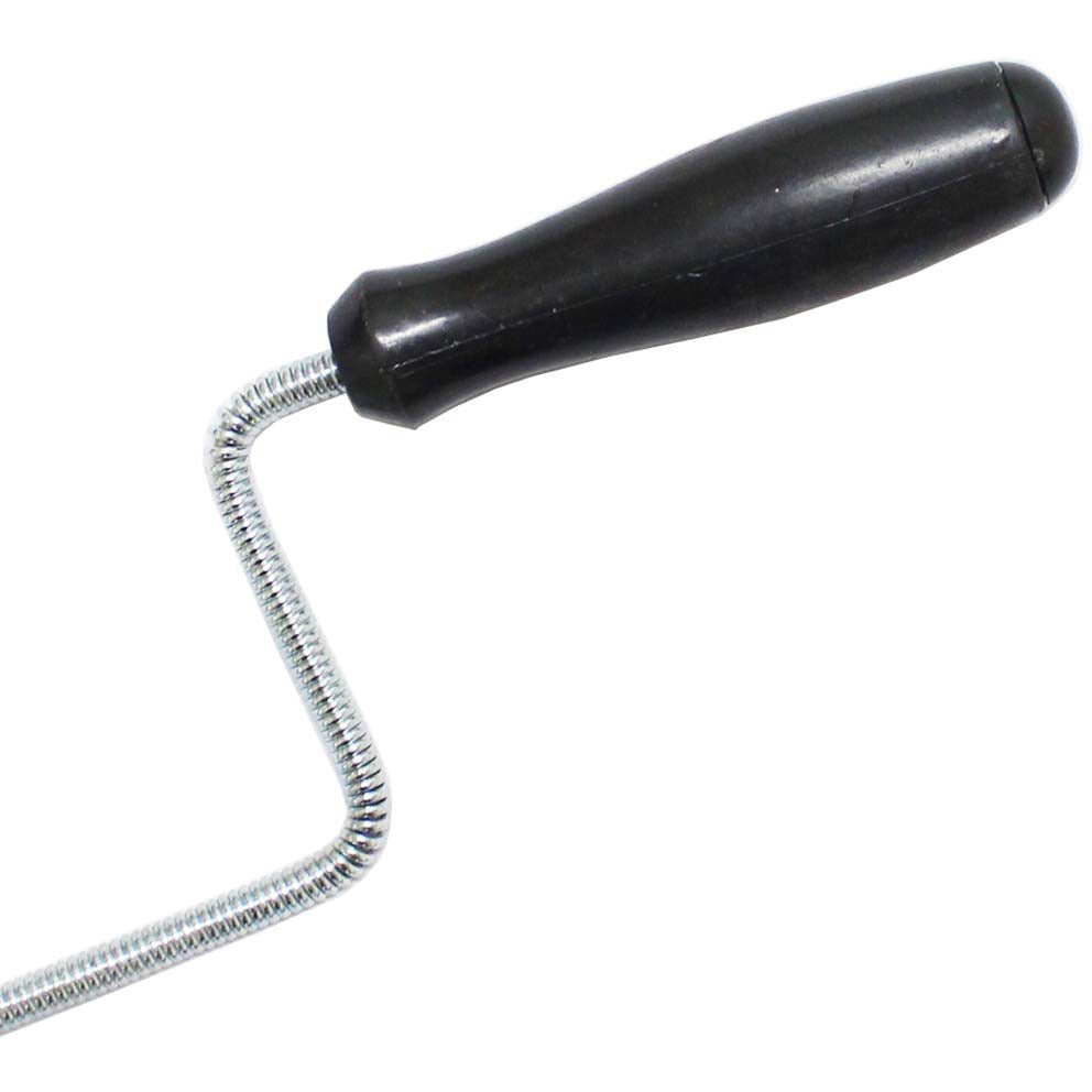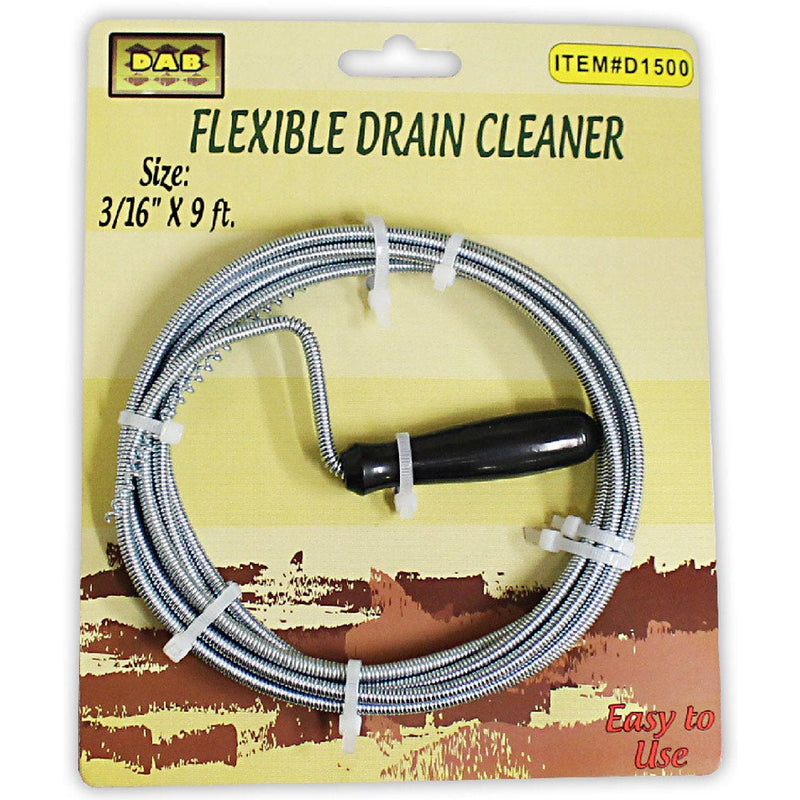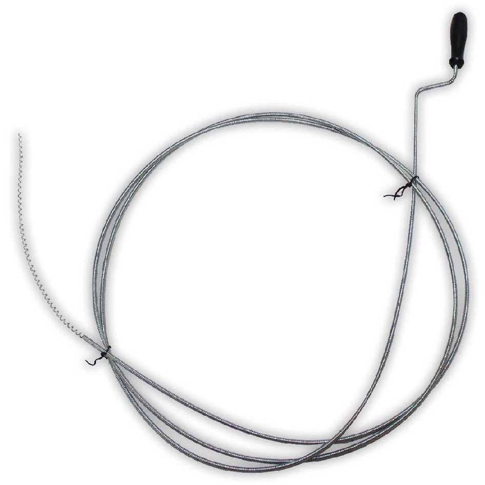 Snake That Clogged Drain And Watch It Drain Freely! Curly Spring Head On The End Clears The Path Just Fine. About 3 Yards (3 Meters). Made Of Spring Wire Cable.This drain cleaner has 9 feet of flexible steel spring to reach way down and pull out clogs Easy to use-just push the end into the drain as far as it will go, and twist before pulling out Wooden handle is made to rotate around for maximum efficiency Curly spring design is extremely effective for pulling hair out of the drain-weighs 10 ounces This is an economical way to clean out your drains-saves money instead of calling a plumber