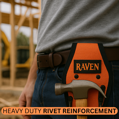 Stay hands-free and efficient with the RAVEN Fixed Hammer Holder – the ultimate addition to your tool belt. Constructed from high-strength 1680D nylon/polyester, this rugged tool holster is built to withstand the demands of daily jobsite wear and tear. The fixed metal loop securely holds your hammer in place, while heavy-duty rivets reinforce the entire structure for long-lasting durability. Its large belt tunnel fits belts up to 3 inches wide, making it a reliable companion for contractors, carpenters, and DIY warriors.