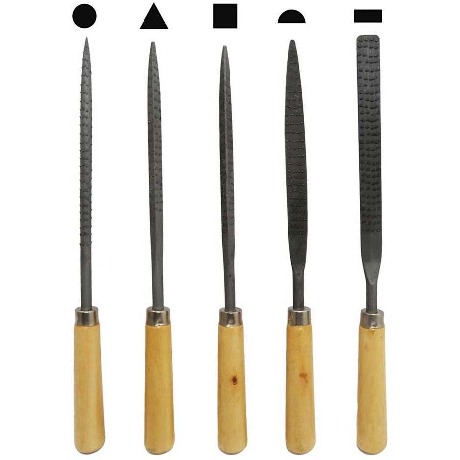 No piece is identical to another in this set which gives lots of variety and meets various needs.Includes ten wood carving chisels - made of high carbon steel blades and wooden handles Includes five wood rasps made of a heat treated steel and wooden handles Rasps come in five different styled points: round, flat parallel, triangle, half round and square Great for carving wood and filing alike - fits all needs Wood rasps come in a variety of grits and sanding textures!
