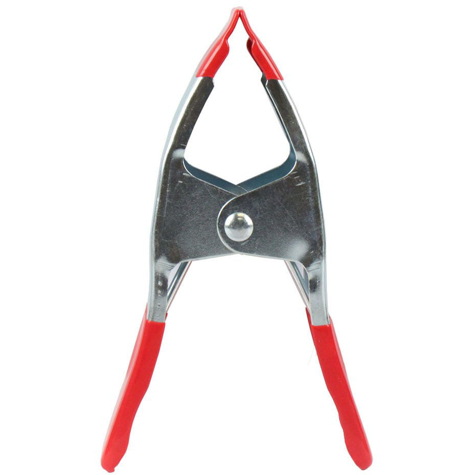 The clamps come in pairs to help you clamp down well.6" long 2 Clamps provided per package - adding these clamps together will severely improve the tension and thusly improve the holding capacity of the clamps Red rubber plastic tips and handles: Each clamp has both the tips and the handles dipped in a red rubber plastic Jaw opens to: 2-1/8" This clamp is small enough to be handy and non-obtrusive when packed in a tool, box, shed, or bag yet provides adequate jaw opening width and strength