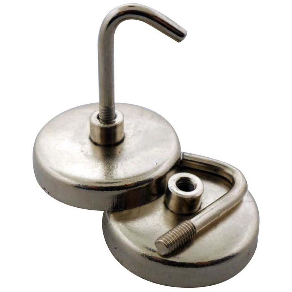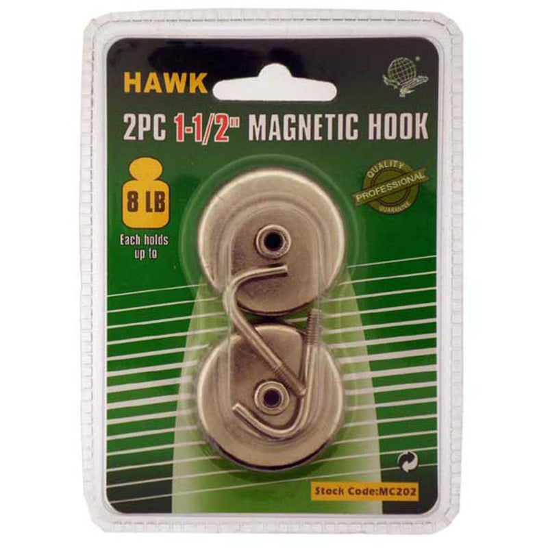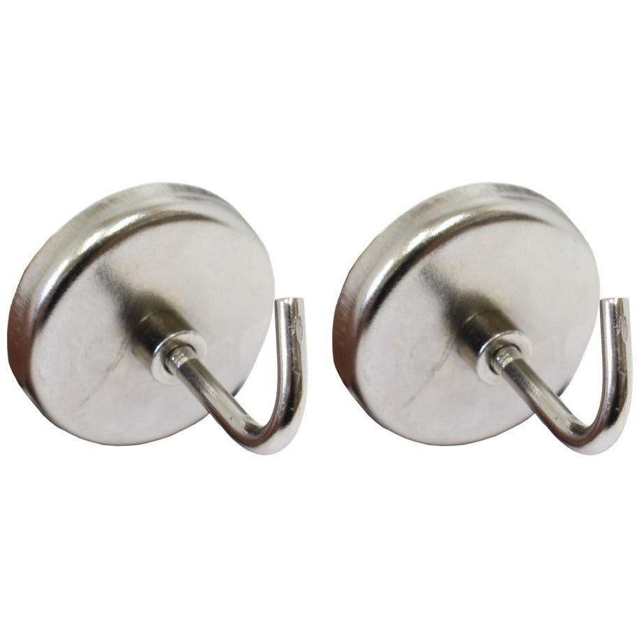 Need a place to hang your clipboard? How about the extra office keys? These magnetic hooks work great for many uses. Just screw the hook into the base, attach to a metal desk or filing cabinet, and you'll have a handy place to hang things, that can be moved anytime you wish. They also work great in the workshop, for hanging tools. The magnets can be used with or without the hooks.* 2 Pieces so you can use these in a few places! * Hook screws into base easily to complete setup - use in seconds! * Each has up to 8 Lb capacity - great for the kitchen, storage area, garage - almost anywhere! * Made of strong steel - silver color * Approx. 1.5-inch diameter | 1.5-inches from very back to very front depth