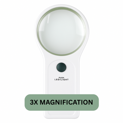 Perfect for your pocket or bag, this 3X handheld magnifier features a built-in LED light to brighten your view anytime, anywhere. With a 2.75" diameter lens and comfortable handle grip, it's ideal for reading fine print, price tags, receipts, and more—at home, school, office, or outdoors.
