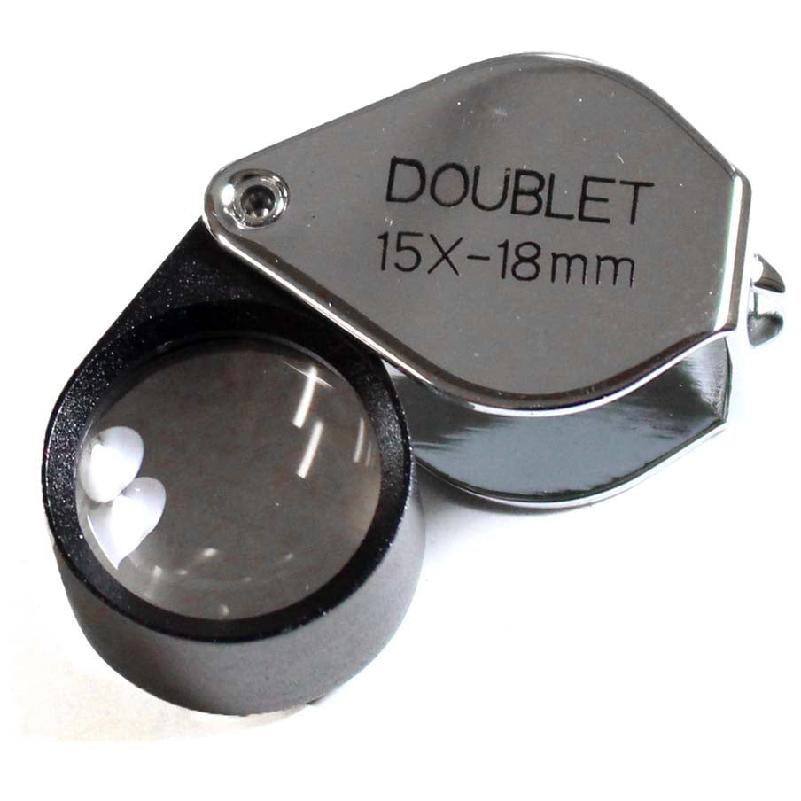 This powerful little loupe can be slipped right in your pocket. Take it with you anywhere. The 18mm lens rotates in and out of the metal holder, which protects it from dirt and scratches. 15x magnification power will guarantee you a really clear view of small details.* Pocket sized convenience with place at end to put key ring so you can have it on the go * 15x quality doublet lens which magnifies 1500% for viewing objects in fine detail * Lens is 18 mm for precise viewing * Frame of the loupe is made of durable plastic and body encasing is made of metal brass * Ideal for jeweler's repairing or inspecting jewelry, stamp collectors, coin collectors