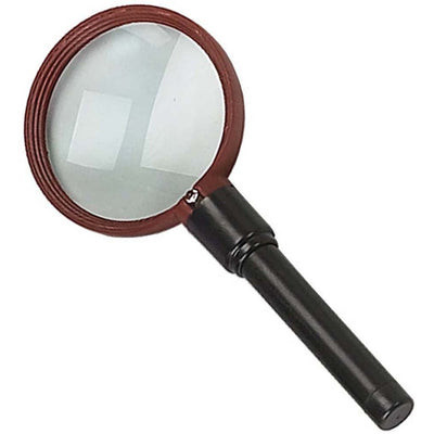 This magnifier will become one of the most used items in your house or workplace. The lightweight plastic frame and body make it easy to handle, and the light will help you to see clearly whatever you're reading or studying.* This magnifier is equipped with a 3 inch diameter distortion free glass lens * It offers 2x magnification power, and a diopter with 4x power * The on/off switch is activated by turning the handle from side to side * Illuminated by a single ultra bright LED bulb - you won't miss a thing * This magnifier requires 2 "AA" batteries (not included) to power the light