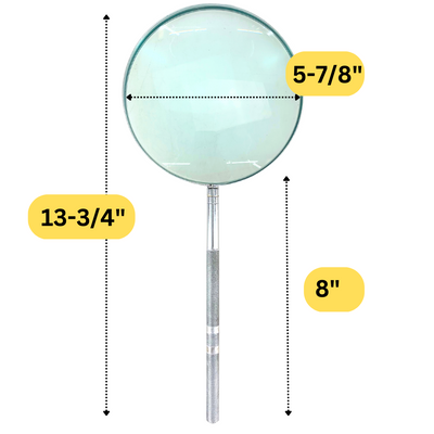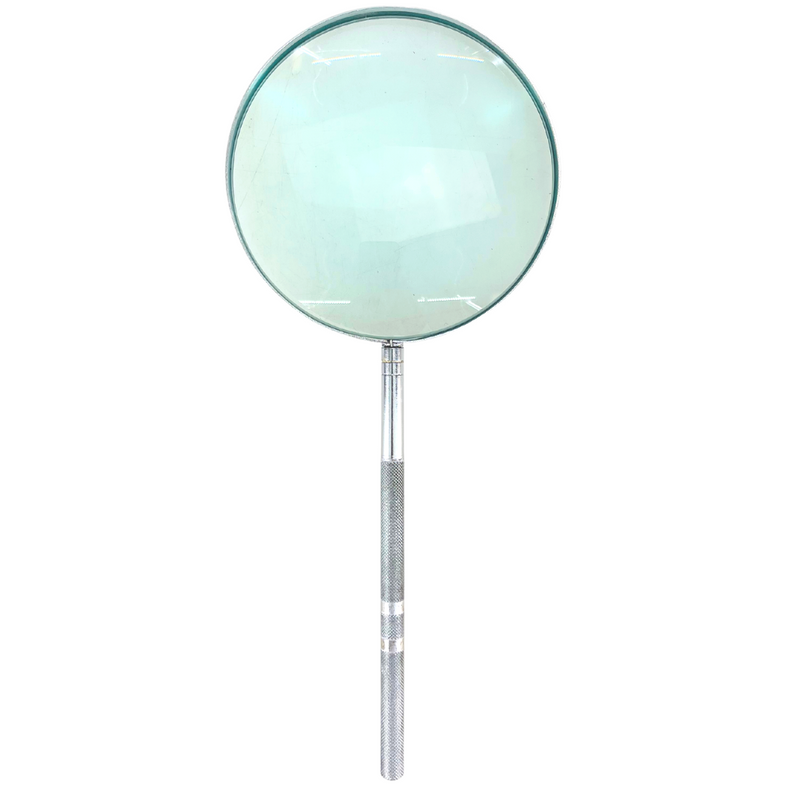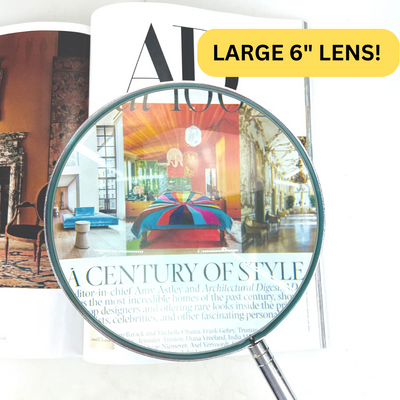 Jumbo 6 Diameter And 2x Magnifying Power With An Extra Long Handle Make This The Perfect, All-around Magnifying Glass. Keep It On Your Coffee Table Or Desk Top. It Makes An Interesting Conversation Piece, As Well As Being Incredibly Useful.* This jumbo magnifier has a 6 inch diameter lens, and weighs about 10 ounces * The textured steel handle is 8 inches long, and the lens is glass * The frame and the handle are both made of steel-the lens can show you a whole page at a time * The magnifier is 2 X power- you'll be able to read you book, your mail, and more * This is a distortion free magnifier-you'll be using it every day