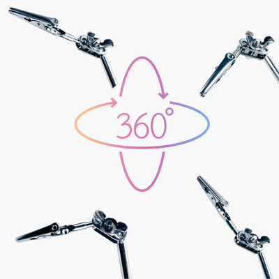 Hands-Free Precision Workstation – Features two fully adjustable 1.5" alligator clips to securely hold wires, jewelry parts, circuit boards, and more while you work.