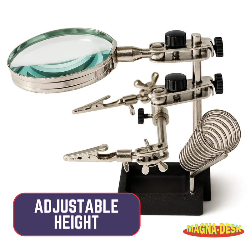 Designed with a weighted metal base for stability, every component is adjustable, allowing you to position your work exactly where you need it. Perfect for electronics soldering, jewelry making, model building, watch repair, and DIY hobby projects, this versatile tool frees up your hands so you can work with precision and ease.