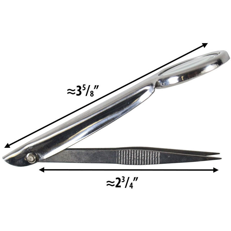 Tweezer length - 2-3/4" long | top magnifier portion length - 3-5/8"