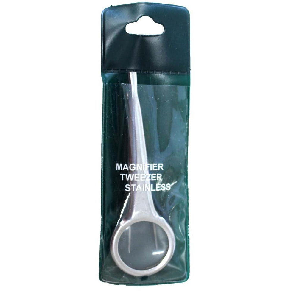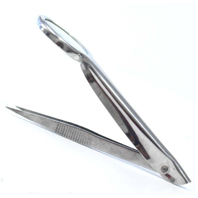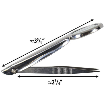 3" Stainless Steel Tweezer With 1" Diameter Lens, 5X Power Magnifier Built In - MG-08990