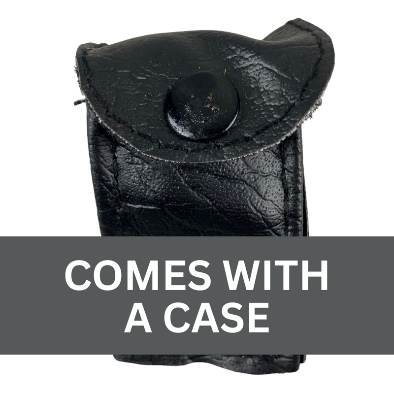 Includes a leather snap case for secure carrying and protection