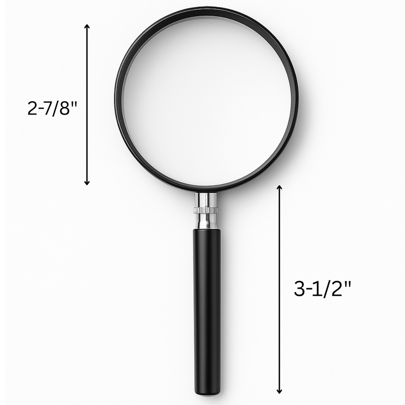 Handheld Magnifying Glass – 2X Magnifier with 3" Glass Lens, Black Frame & Handle – Reading Aid for Home, Office & School