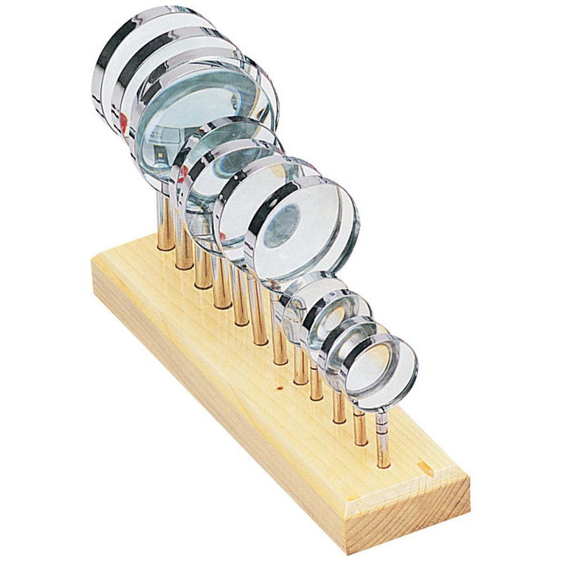 12 Pc Magnifier Display In Wood Rack: 4 Each Of: 1.5", 2", & 3" Diameter - MG-68500