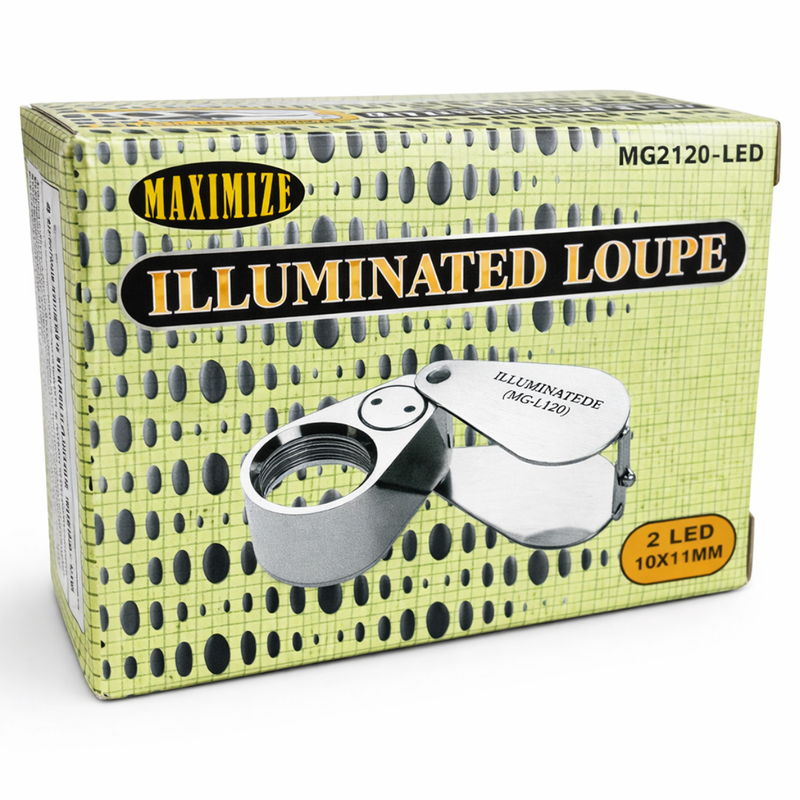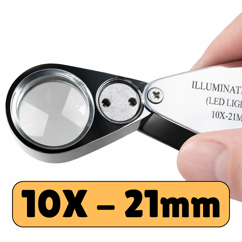 This compact yet powerful 10X jeweler’s loupe features a high-quality triplet glass lens and built-in dual LED lighting, making it ideal for inspecting fine details even in low-light environments. Designed with a durable chrome-finished metal body, this swivel-style loupe folds neatly for portability and includes everything you need right out of the box.