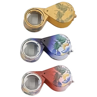 Here's Your New Favorite Loupe: Not Only Functional, But Pretty, Too. This 10x, Appx. 3/4" Lens Has A Focal Length Of 1". Folds For Easy Transport.comes In A Small Leather Pouch* Beautiful floral print makes this stylish loupe stand out from the rest * 10x magnification power enlarges objects 1000%; ideal for jewellers, stamp collectors, etc. * Constructed from durable and hard brass metal so the loupe can withstand wear and tear * 18 mm quality lens for viewing small detail; comes in brown snap-on pouch * Loupe has swivel case which allows for easy storage and protection