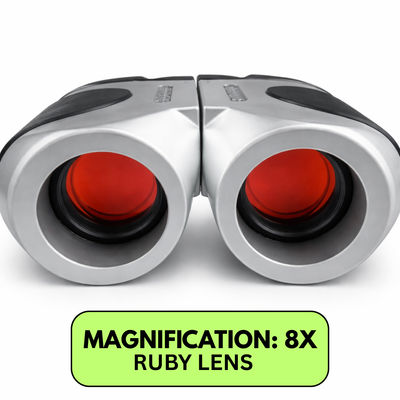 These 8x Sporty Mini Compact Binoculars deliver powerful performance in a small, lightweight design. Featuring 8x magnification and 21mm amber (ruby) lenses, they help cut glare while providing clear, comfortable viewing—perfect for school sporting events, sightseeing, hiking, or casual nature observation.