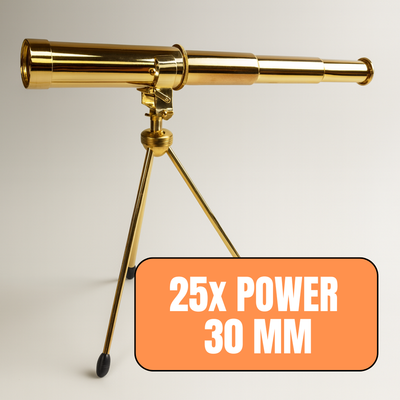 Bring vintage adventure to life with this beautifully crafted 14-inch Antique Brass Telescope. Designed with an old-world nautical look, this solid brass spyglass is fully functional and perfect for exploring the outdoors or complementing your décor. The 30mm objective lens delivers crisp viewing power, while the telescope conveniently collapses from 14" to just 5.5", allowing you to store it in the included belt-attachable nylon pouch. Set it on the matching brass tripod for hands-free viewing of landscapes, wildlife, nighttime skies, concerts, and more. A great collectible piece, gift item, and learning tool for both kids and adults.