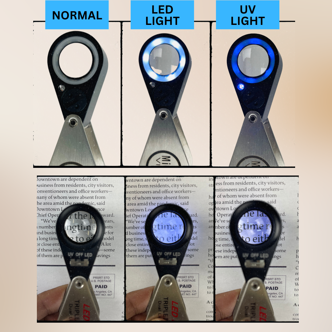 Triplet Glass Lens Jeweler's Loupe with UV and White Light - 10X Power - MG2021-UVLED